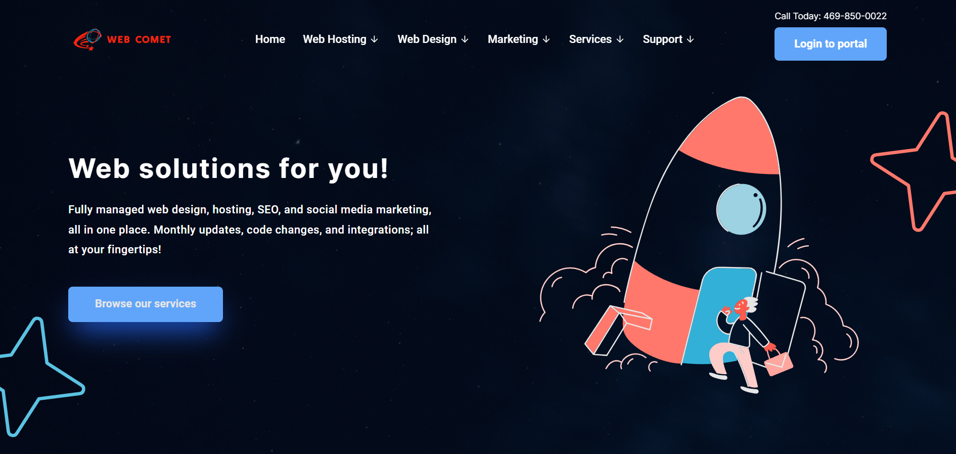 Web Comet saved the day for me today. He is knowledgeable and down to earth. We are glad we have Web Comet looking out for us.